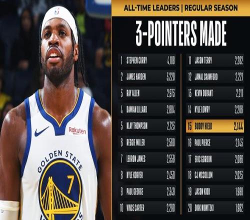 北京时间11月17日,在NBA常规赛金州勇士客场与新奥尔良鹈鹕的比赛中,希尔德命中了自己生涯的第2144个三分球,迎来里程碑一刻。