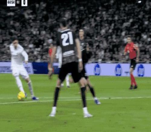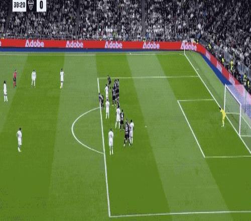 第39分钟,皇马获得前场任意球,维尼修斯一拨,巴尔韦德直接爆射,门将将球挡出,皮球来到吕迪格的脚下,德国后卫不等皮球落地,直接将球打进。